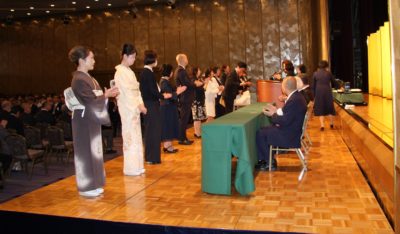 授賞式は土橋靖子理事長からの挨拶から始まり、三月審査会部長である堂本雅人常務理事と倉橋奇艸常務理事からの審査概評、黒田賢一最高顧問からの祝辞と続きました。