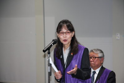 続いて、手書き文字部担当の山本悠雲・日本書芸院副理事長、手書き文字部部長の木村通子・日本書芸院常務理事から挨拶がありました。